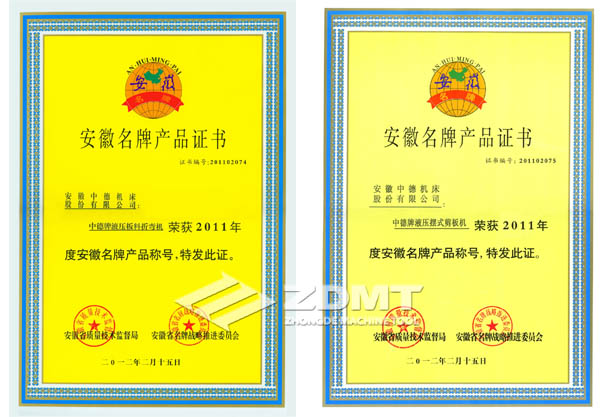2012年3月22日,马鞍山市召开了全市品质手艺监视任务集会,集会对2011年取得质监部分相干声誉的企业与小我停止了惩处,我公司中德牌液压油缸摆式液压剪板机和中德牌液压系统板料拆弯机两个产物别离经由过程了2011年“安徽名牌”的复审。